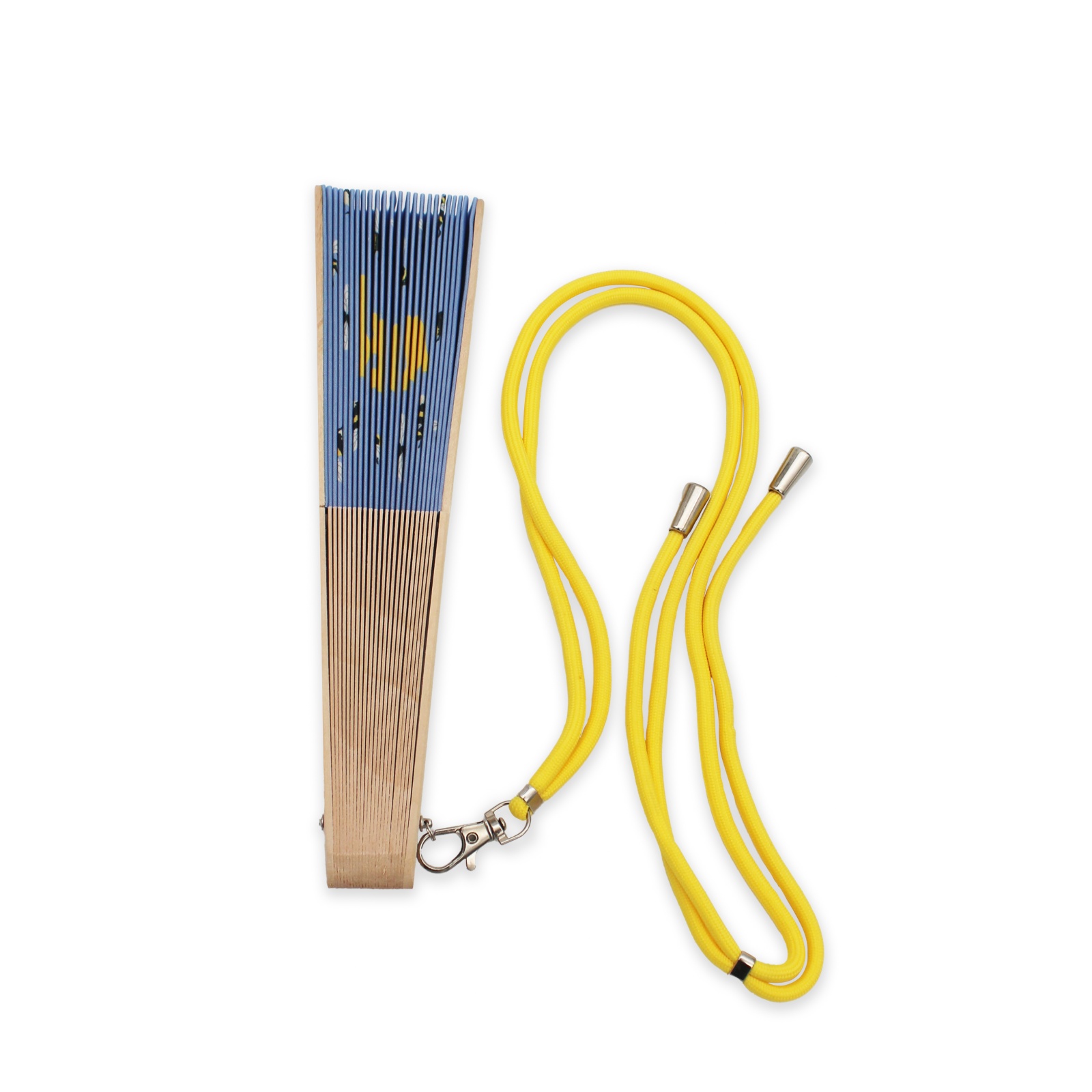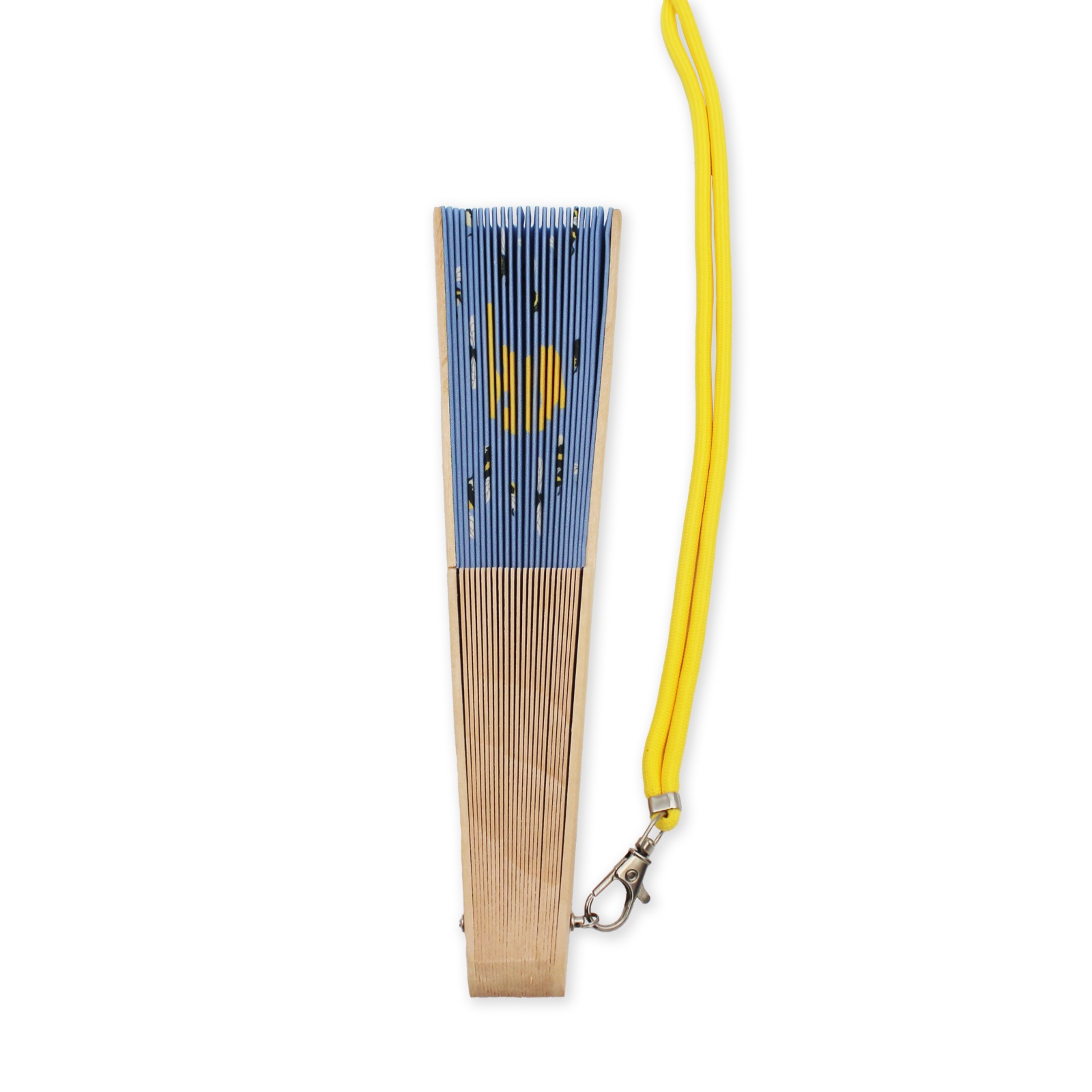 Kokkuvolditav lehvik. Lehvikul on kaasas ka pael kaelariputamiseks või ümber randme panekuks. Materjal: Puit, riie, metall